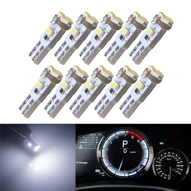 10 шт. T5 Led W1.2W автомобильный светильник 5 SMD 1206 приборная панель манометр инструмент авто интерьерная Лампа DC 12 В