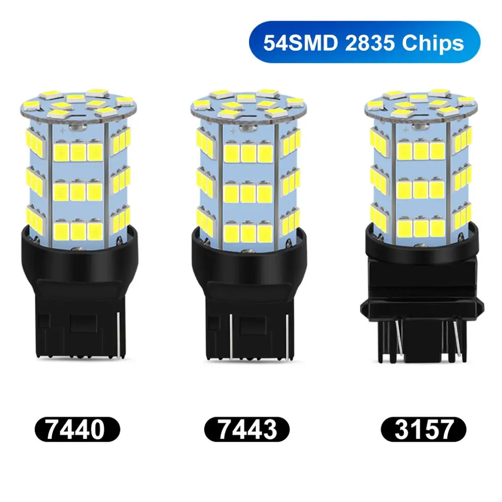 2 шт. 54SMD 2835 чипы T20 светодиодный 7440 7443 W21W W21/5 Вт светодиодный T25 3157 P27 7WBulbs лампа авто тормоз Фары заднего хода дневные ходовые огни 12V белый цвет...