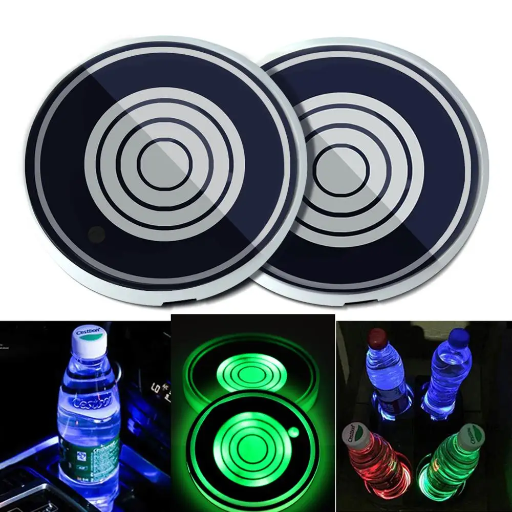 Волшебная цветная автомобильная светодиодная лампа держатель чашки для логотипа коврики подставки под бутылки 7 видов цветов авто внутри Атмосфера свет органайзер для USB Pad