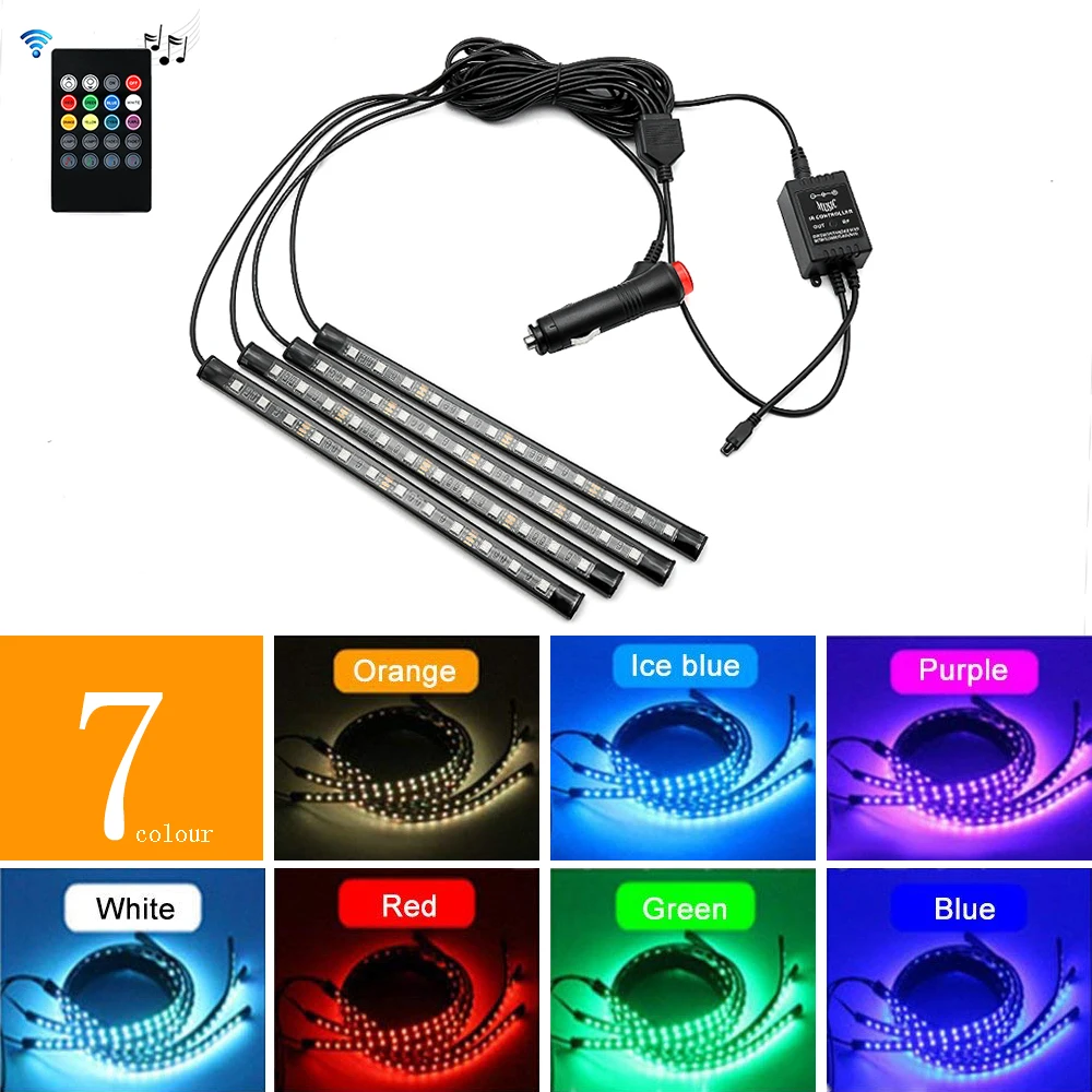 4x светодиодный для внутреннего оформления автомобиля неоновый свет RGB голос Сенсор Звук Музыка Декор лампы с дистанционным Управление для ...