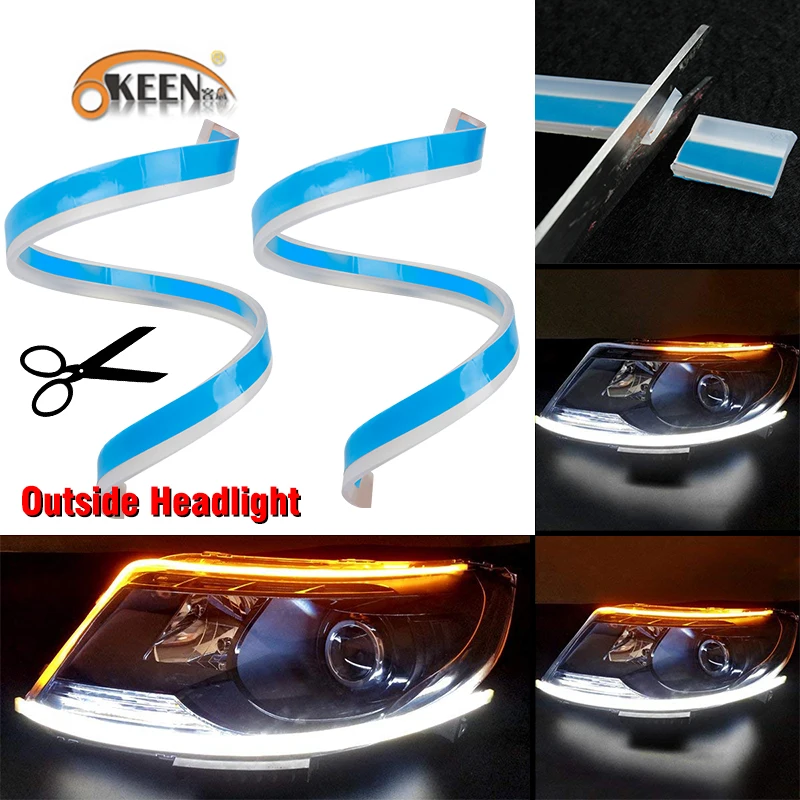 OKEEN 2 шт. 60 см Гибкий СВЕТОДИОДНЫЙ DRL для головной светильник, полосы дневного света, светильник с желтым последовательный сигнал поворота, лампа 12 В