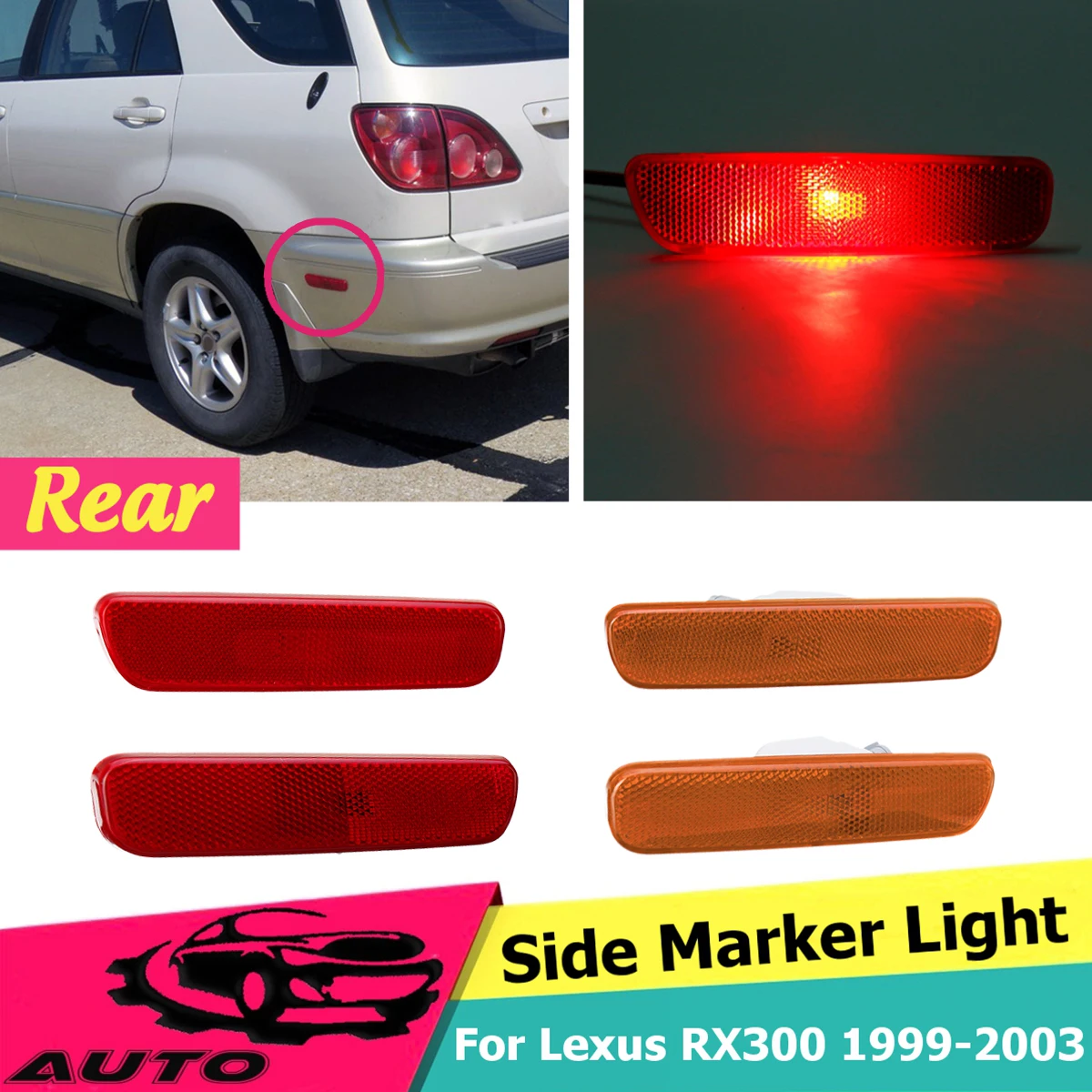 Задний левый правой стороны бампера Включите маркер сигнала свет лампы желтый красный для 1999 2000 2001 02 2003 для Lexus RX300 81760-48010