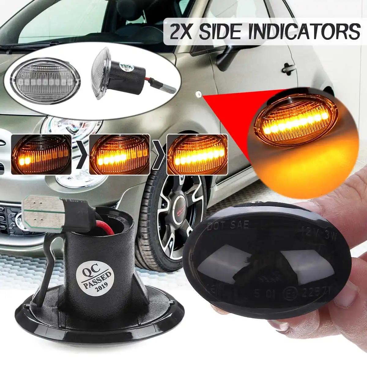 2 шт. динамический Светодиодный Боковой габаритный указатель поворота светодиодные боковые габаритные огни янтарный индикатор ретранслят...