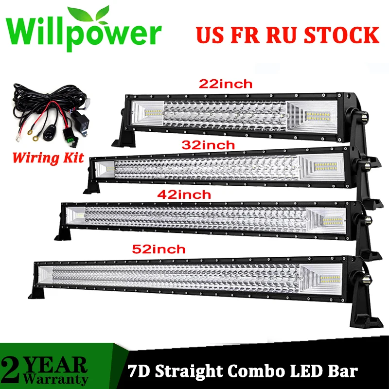 Willpower 22 32 42 52 дюймов 7D внедорожный светодиодный прямой комбинированный луч для автомобиля светодиодный Рабочий фонарь для вождения для грузовика ATV 4X4 пикап 12В 24В