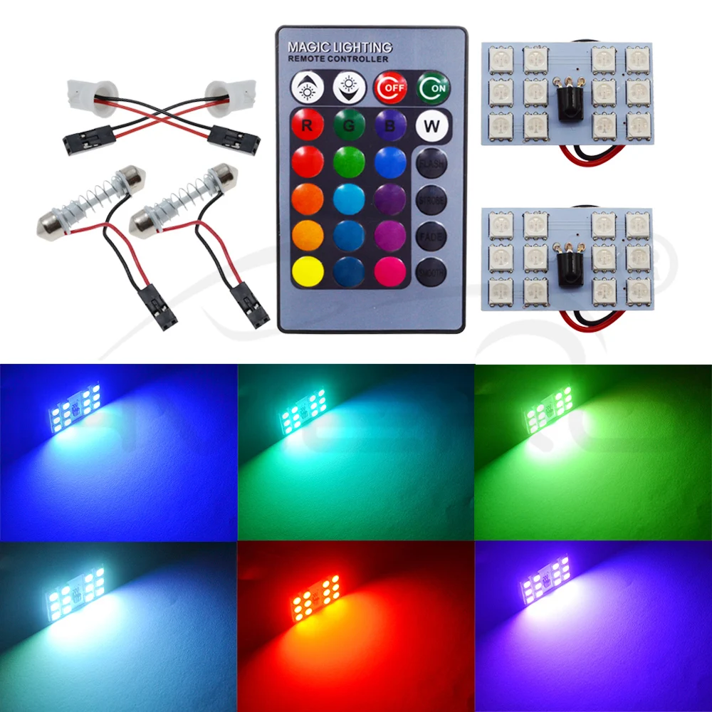 T10 автомобильный Led RGB DC 12V 5050 12SMD авто Led пульт дистанционного управления Rgb панель интерьер Авто светильник s чтение купол Festoon BA9S адаптер светильник