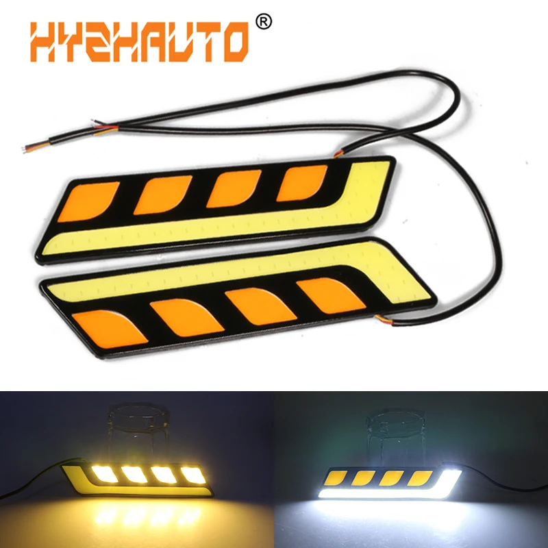 HYZHAUTO 2 шт. светодио дный лампы COB дневные ходовые огни водостойкие двухцветные белые янтарные авто DRL поворотные сигнальные огни В 12 В