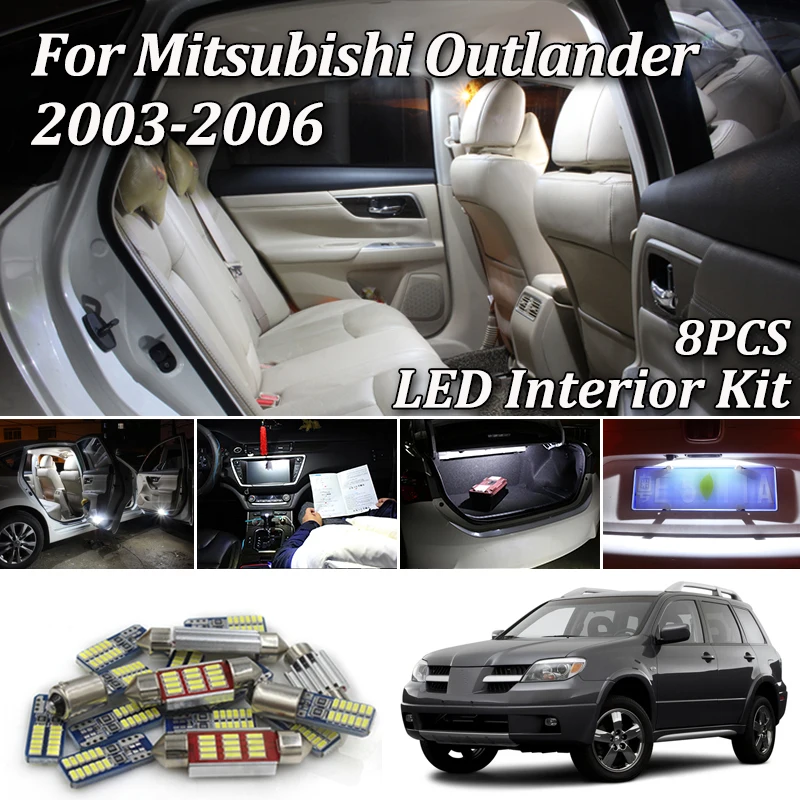 8 шт. Canbus Белый Автомобиль Светодиодный лампочки интерьер светильник посылка комплект для Mitsubishi Outlander 2003 2004 2005 2006 светодиодный интерьер