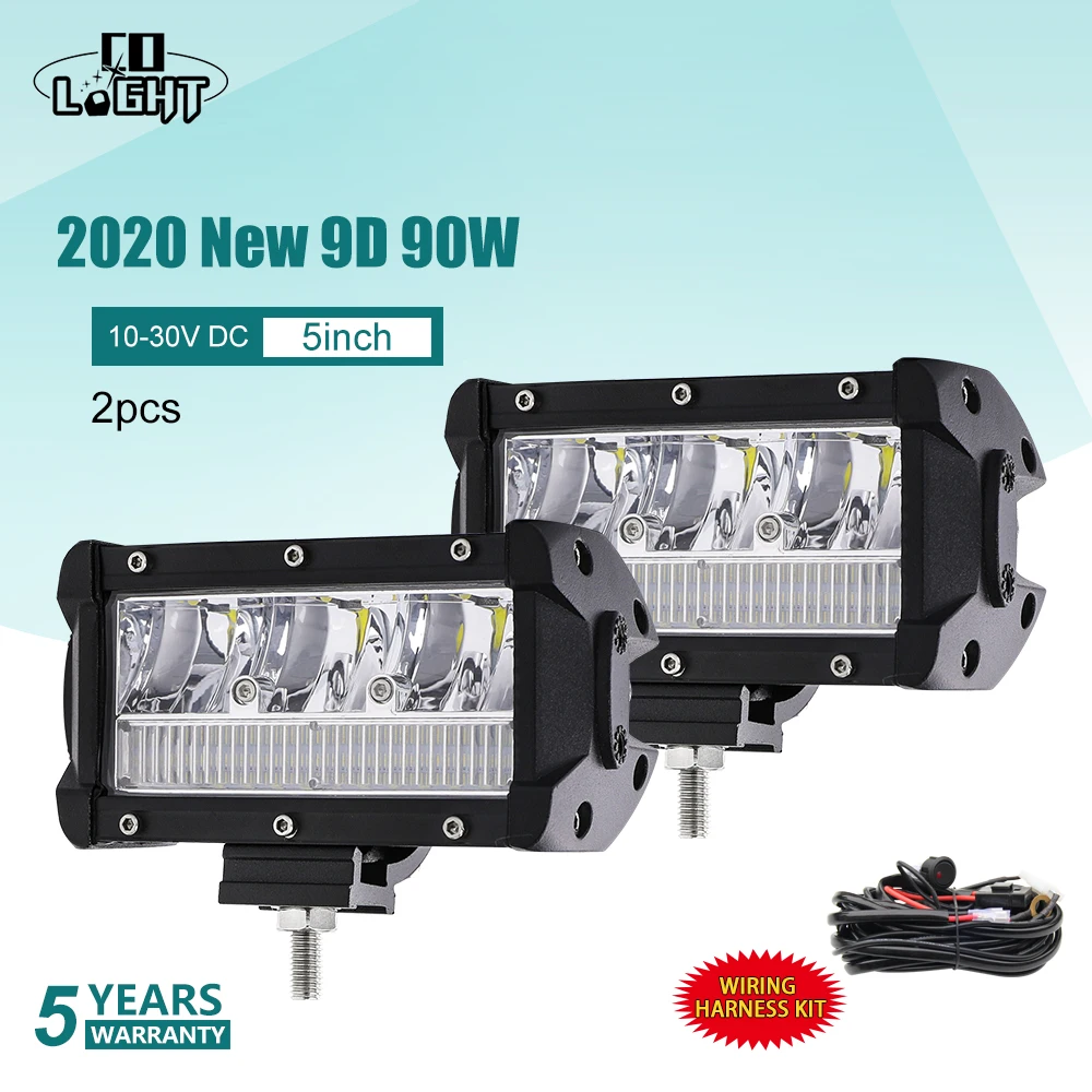 Со светом 9D 5 "90 Вт светодиодный свет бар пятно света потока комбо внедорожный светодиодный свет бар мотоцикл светодиодный фары для автомобилей 4x4 4WD грузовик УАЗ
