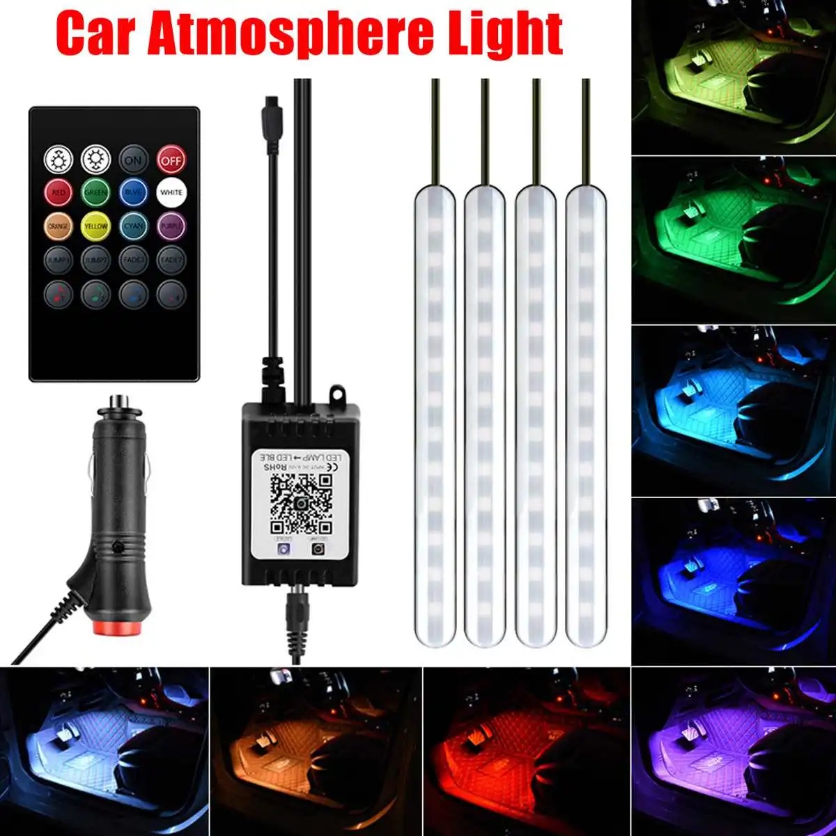 48LED автомобильный светильник для ног, внешняя лампа с USB, Беспроводное дистанционное управление музыкой, несколько режимов, автомобильные аксессуары, интерьерные декоративные