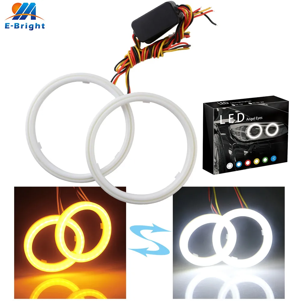 2X COB хлопок свет автомобиля светодиодный ангельские глазки двойной цвет белый и желтое кольцо ореола универсальная фара постоянного тока Д...