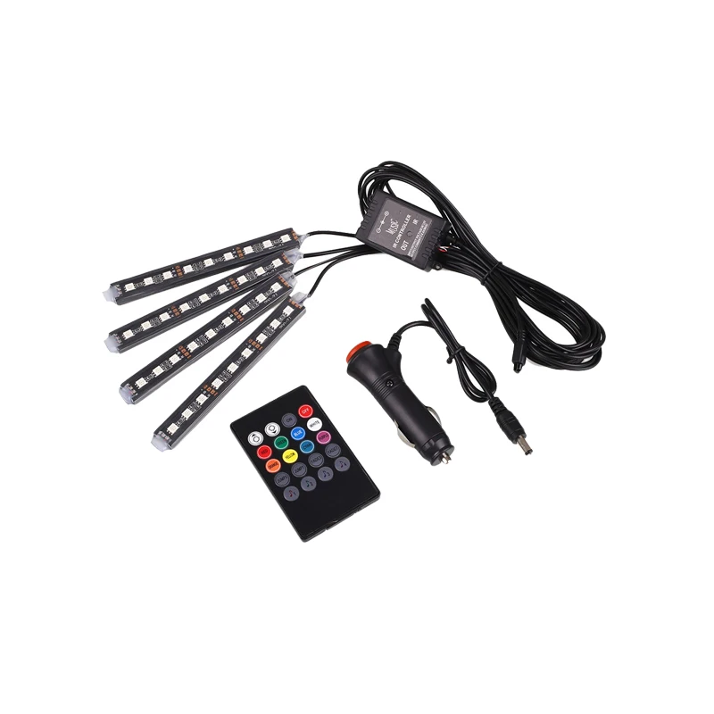 4x автомобиля Светодиодные ленты свет дистанционного Управление Декоративные Атмосферу лампы Ослепительная Цвет RGB следовать диджеев Flash А...