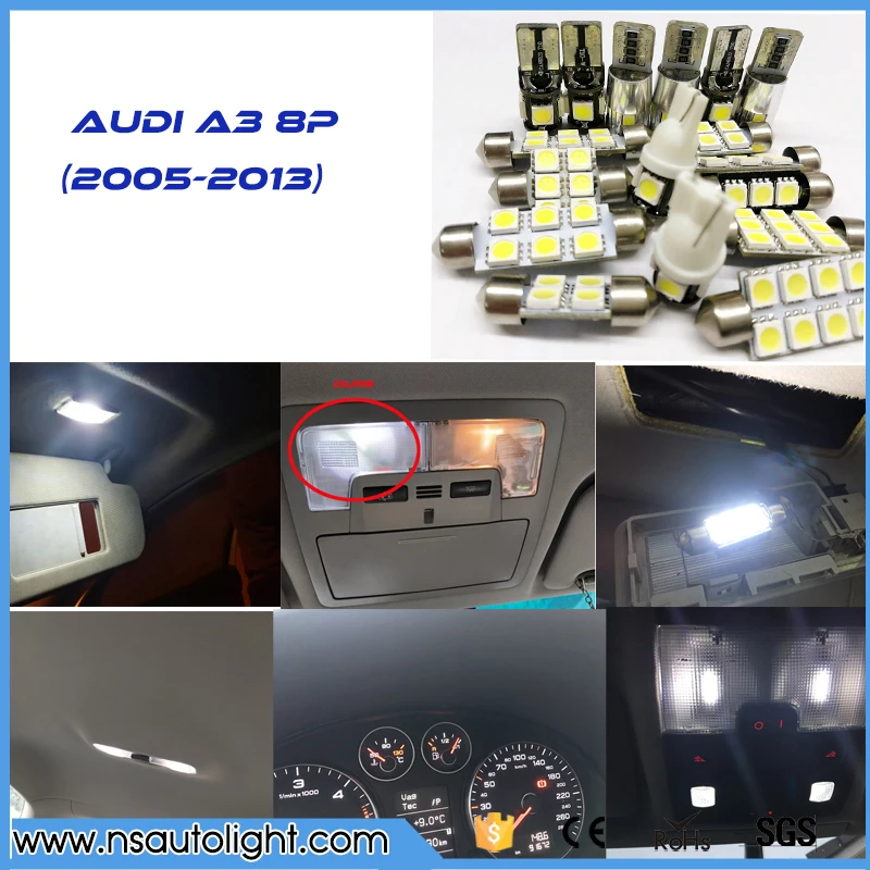 12 шт. ошибок светодио дный Интерьер Свет комплект посылка для AUDI A3 8 P аксессуары 2004 2005 2006 2007