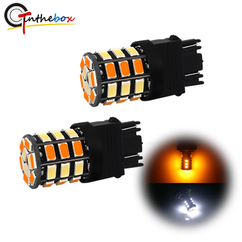 GTinthebox 2 шт. переключатель Белый/янтарный T25 3157 P27/5 Вт P27/7 Вт светодиодный лампы для вождения/парковки DRL светильник передний указатель поворот...