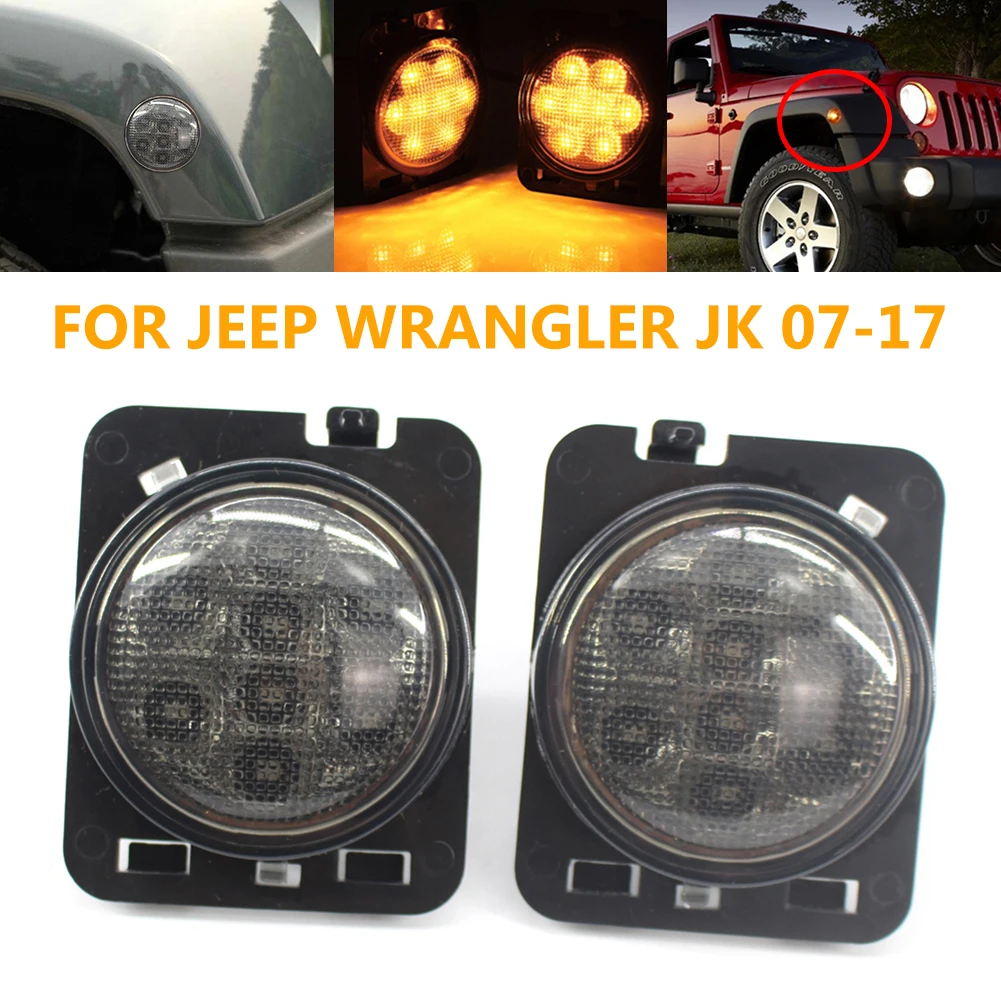 1 пара, янтарный цвет, 4 Вт, 144Lm, круглый светодиодный указатель поворота + боковые габаритные огни, дымчатые линзы для Jeep Wrangler JK 2007-2017