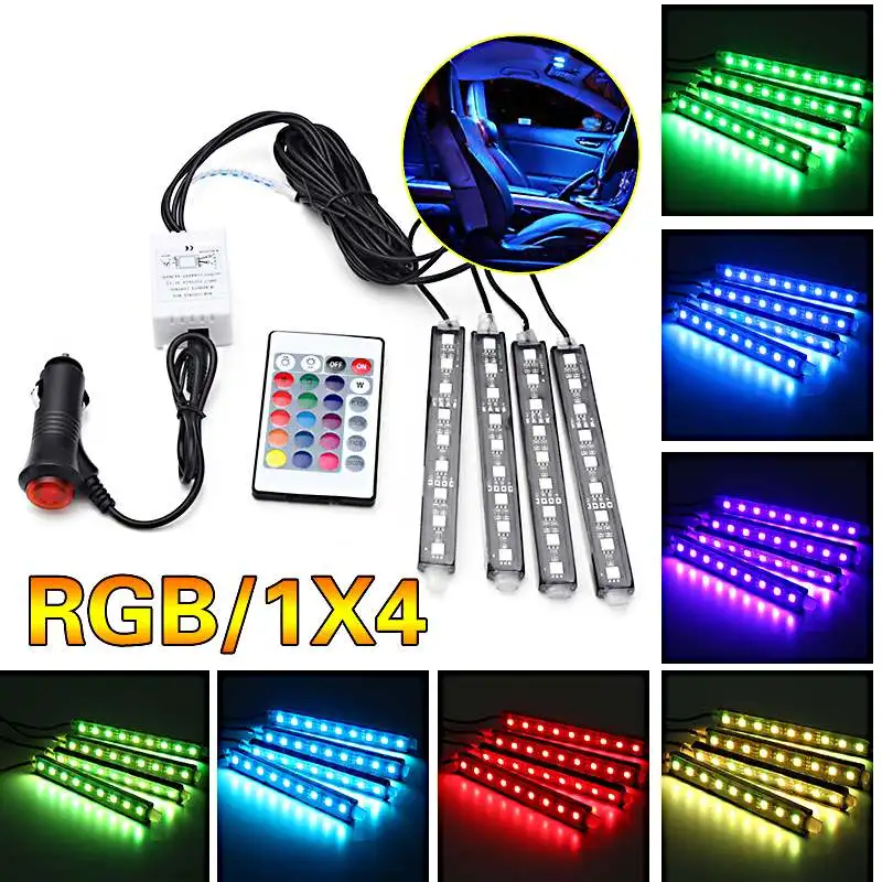 10 Вт 4 шт. 5050 авто светодиодный RGB декоративный свет для внутреннего пола DC12V атмосферная полоса путь деко напольный свет дистанционное управ...