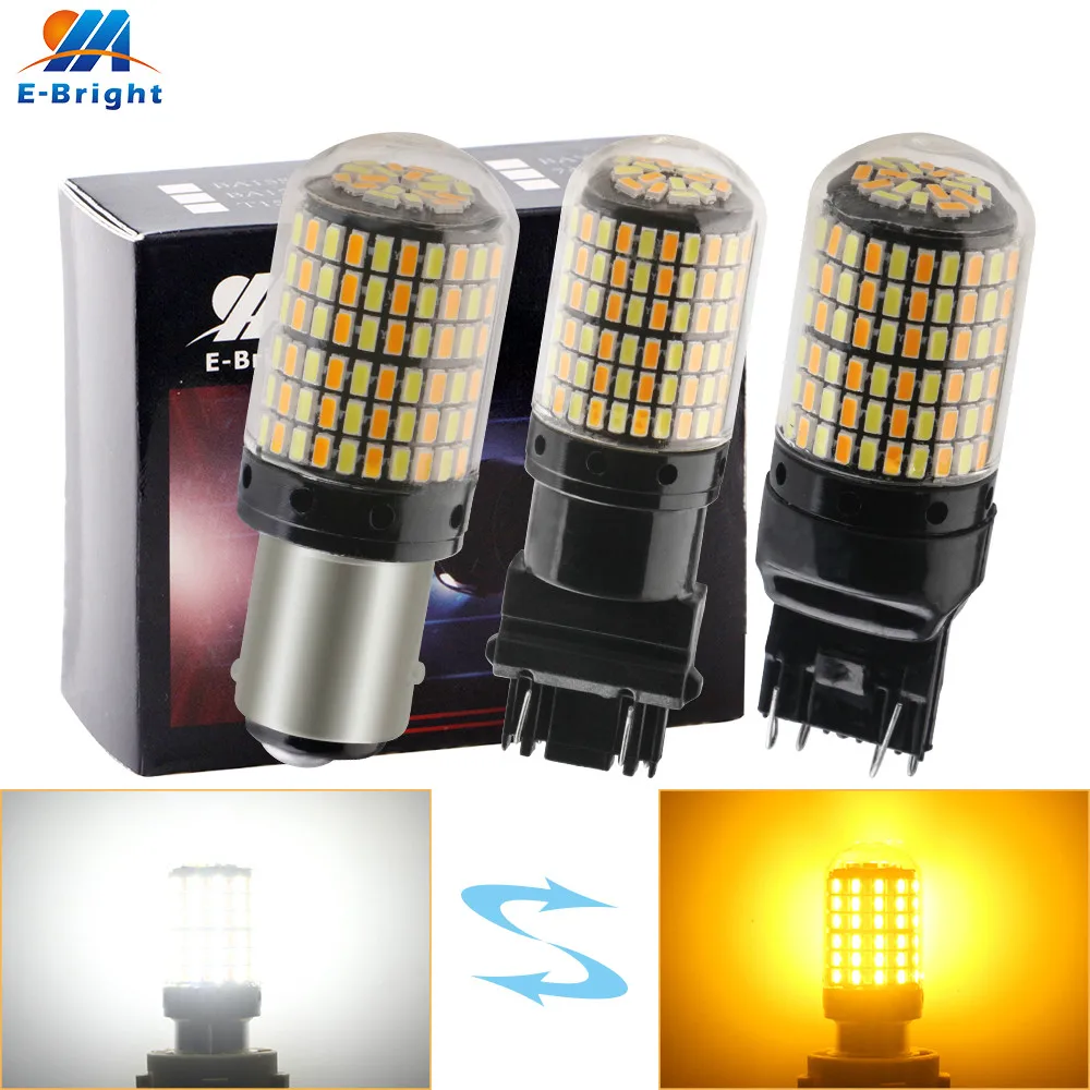 2X DC 12V двойной цвет p21/5 w 1157 BAY15D 3014 144 SMD 3157 7443 t20 Светодиодные лампы универсиальный день свет сигнала поворота белый Янтарный