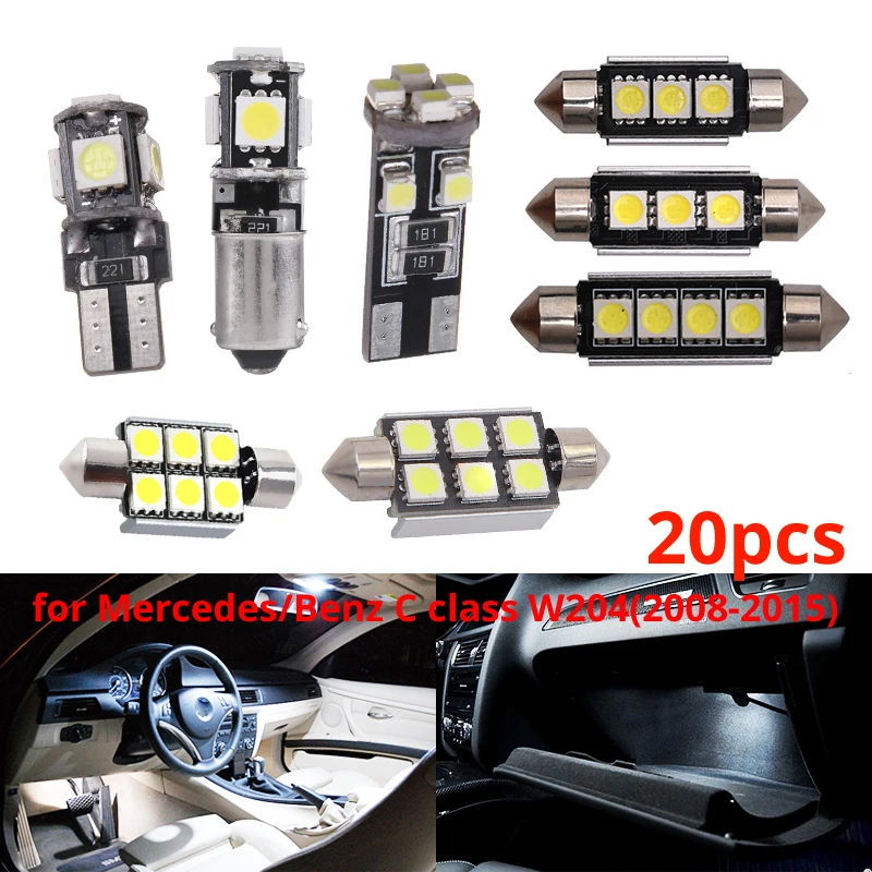 20 шт. белый автомобильный интерьерный светодиодный светильник, комплект без ошибок, автомобильный интерьерный купольный светильник с карт...
