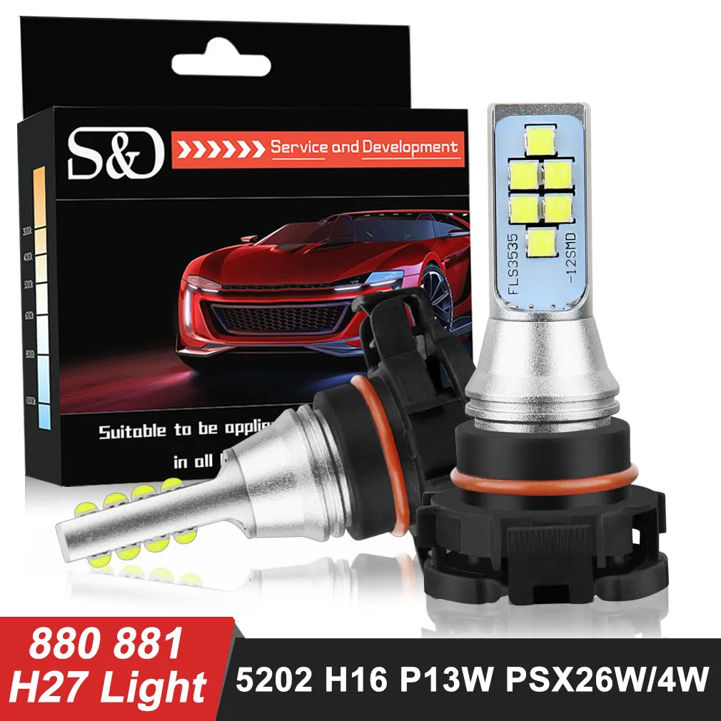 2 шт. авто светодиодный лампы H27 светодиодный 880 881 P13W 5202 H16 светодиодный PSX24W PSX26W Противотуманные фары Дневные Фары Свет 1800LM дневные ходовые ог...