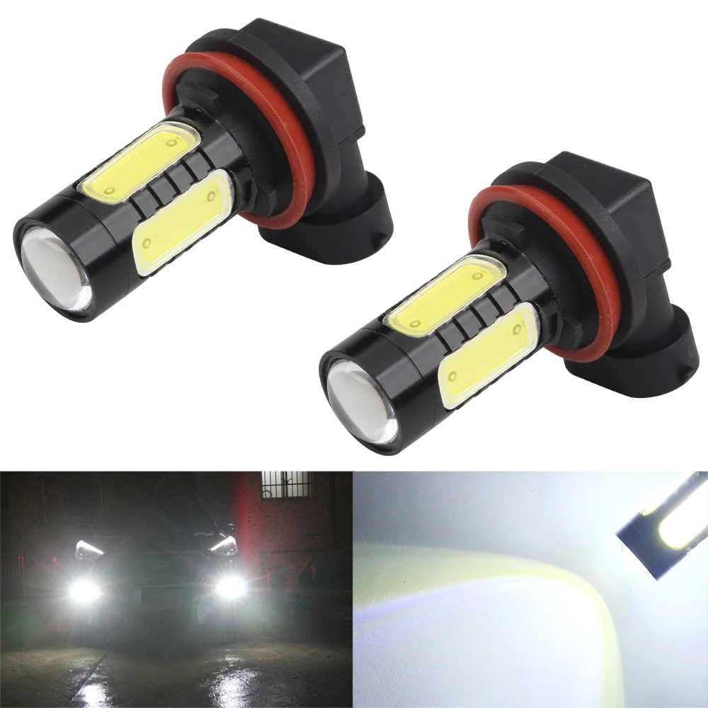 Комплект из 2 предметов, белый автомобиль H8 лампа H11 светодиодный COB автомобильная лампа авто фары дальнего света Противотуманные лампы, раб...