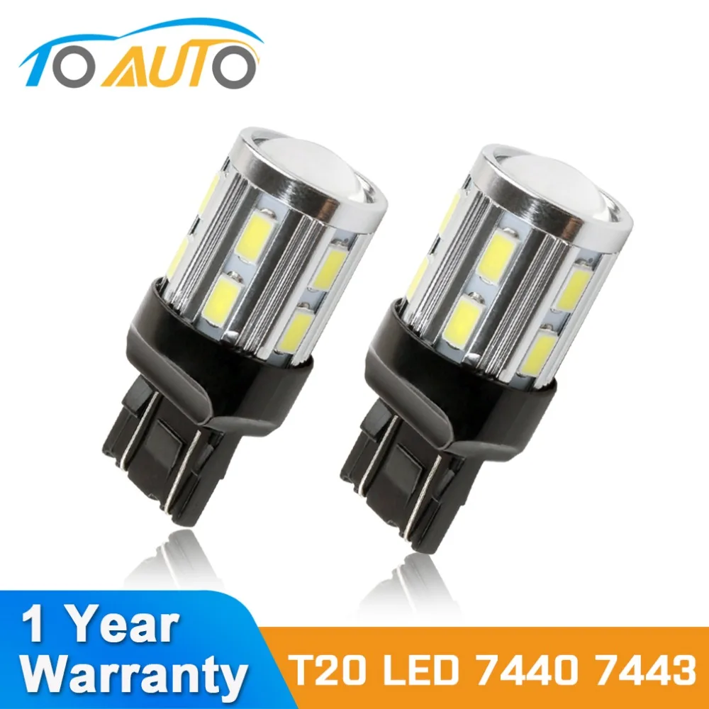 2 шт T20 W21 5 W 7443 светодиодный белые светодиоды; чип 12SMD 5730 Автомобильные стоп-сигналы Реверсивный лампочка для машины 7440 W21W светодиодный лампы ...