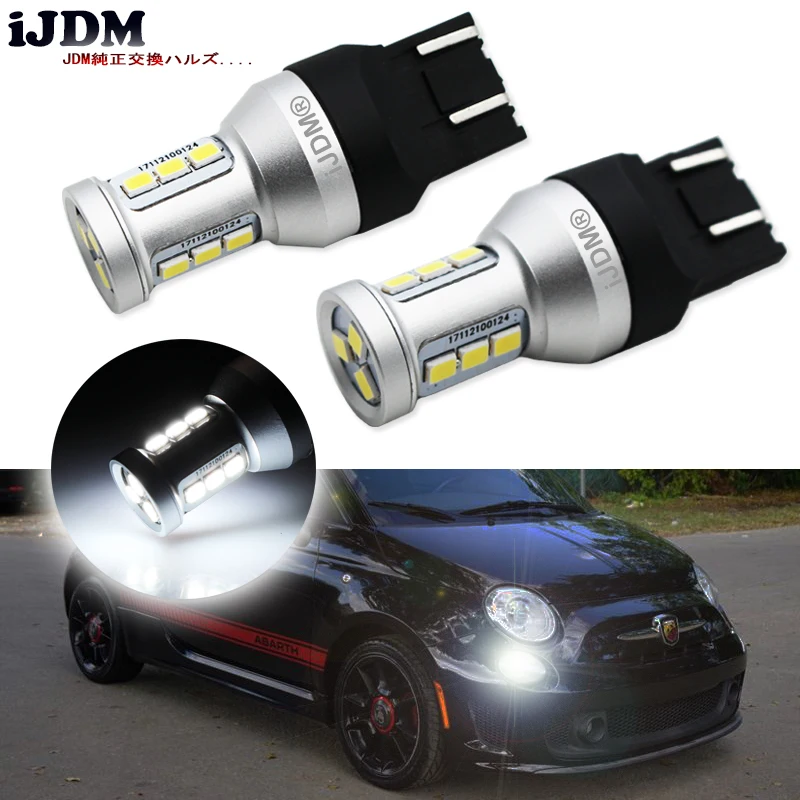 Ijdm автомобиля T20 светодиодный 6000 К белые Мощность 7443 W21/5 Вт светодиодный лампы 12 В для поворота сигнальные огни, габаритные огни, Фары заднег...