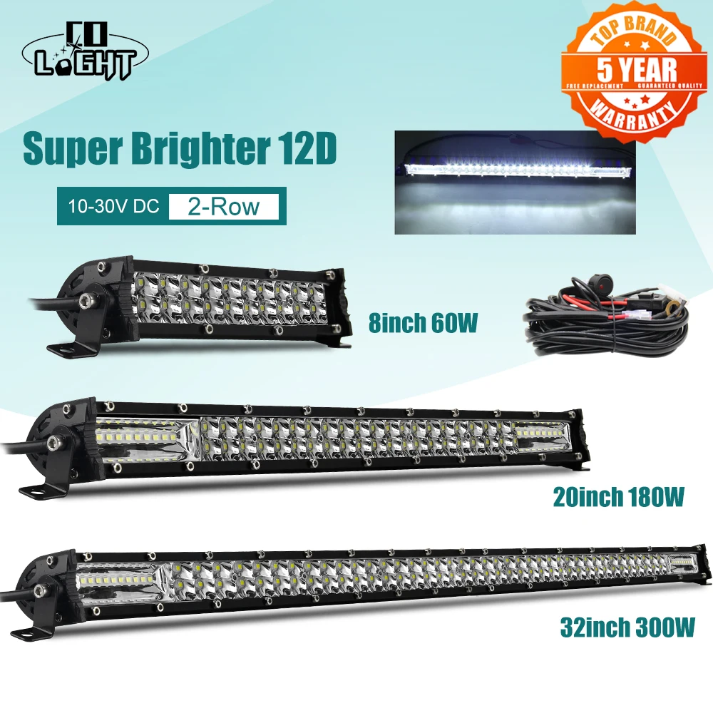 CO LIGHT Супер тонкий 12D 8 "20" 32 "Светодиодный прожектор 60 Вт 180 Вт 300 Вт светодиодный бар 4x4 для ATV SUV внедорожный светодиодный рабочий свет 12 в 24 В
