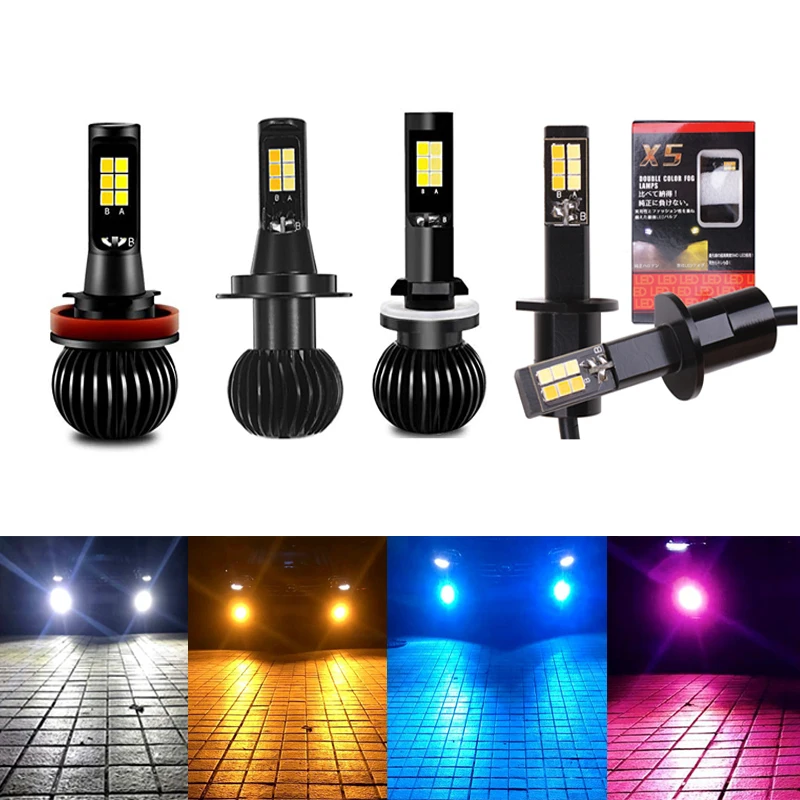 2 шт. COB Светодиодный Противотуманные фары двойной цвет вспышка автомобильный 9005 9006 H1 H3 H7 H8 H11 H27 880 881 тюнинговые автомобильные универсальные ...