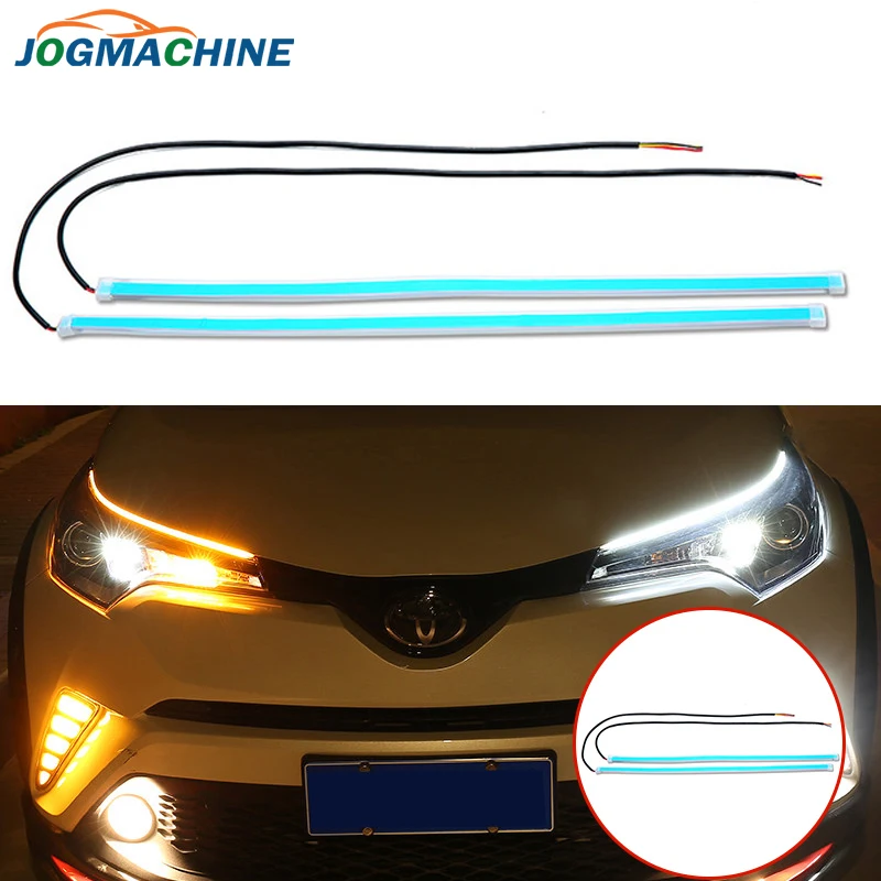 2x ультратонкая DRL 30 45 60 см дневной ходовой светильник, гибкая мягкая трубка, направляющая автомобильная светодиодная лента, белый, красный, сигнал поворота, желтый, водонепроницаемый