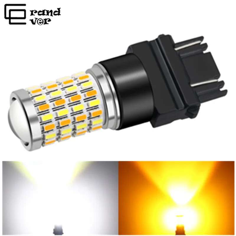 2 шт. 3157 светодиодный двухцветный Автомобильный светодиодный 3014 72SMD 3030 4SMD Canbus без гипервспышки 3157 лампа для сигнала поворота Задний тормозно...