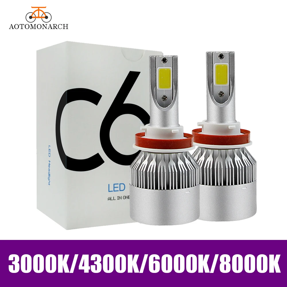 2X Cob автомобильный светильник, противотуманный светильник C6 H1 H3 H4 H7 H11 HB3/9005 HB4/9006, Автомобильные светодиодные лампы 72 Вт 7600lm