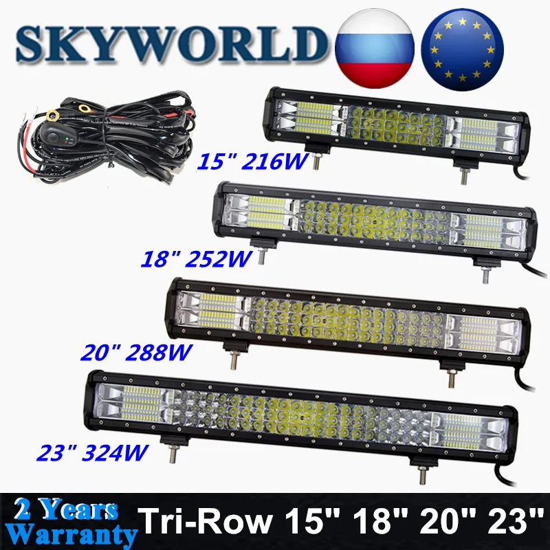 SKYWORLD 4 5 15 18 20 23 дюймов 7D трехрядный светодиодный светильник для работы бар точечный прожектор комбинированный луч внедорожный для грузовика Jeep 4X4 4WD UAZ ATV 12-24V