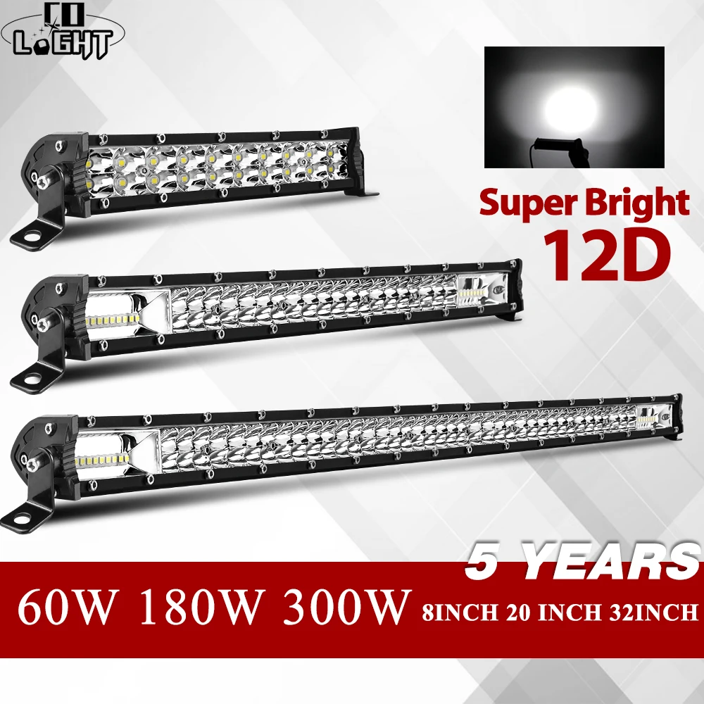 Со светом 8 "20" 32 "12D тонкий светодиодный свет бар однорядные 60 Вт 180 Вт 300 4x4 светодиодный бар для внедорожник 4WD ATV внедорожный светодиодный рабочий свет 12V 24V