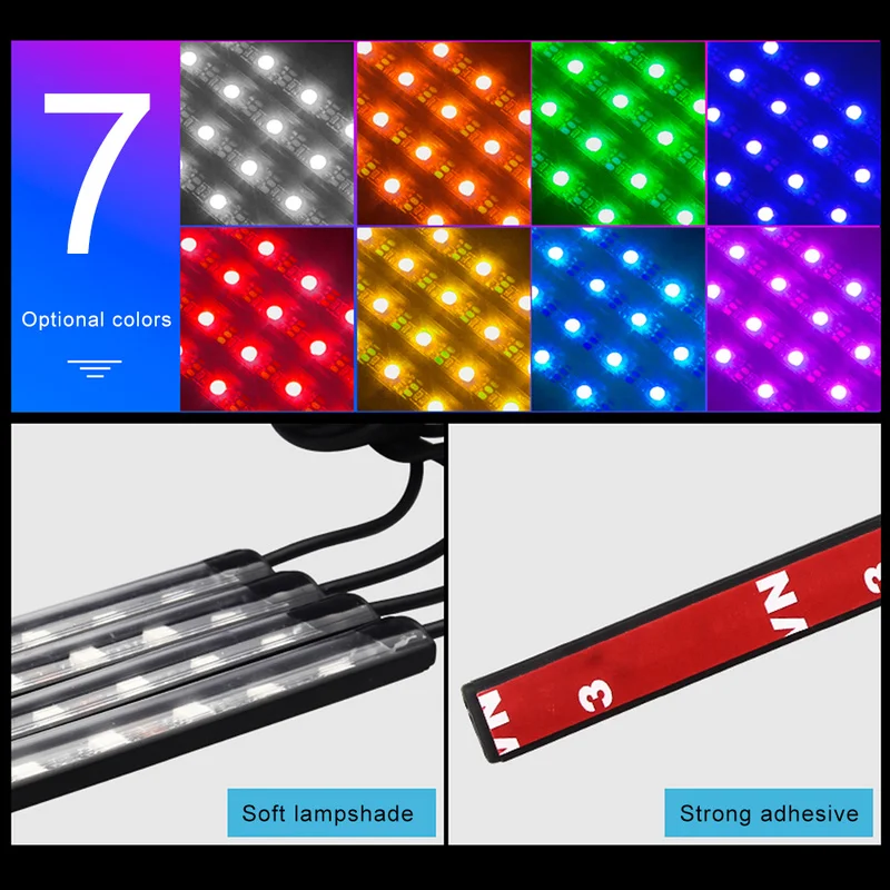 Автомобильный светильник, напольный светильник светодиодный, разноцветный, голосовой, неоновый светильник, RGB светильник, автомобильный светильник, автомобильные аксессуары для интерьера