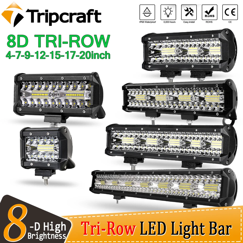Tripcraft 3 ряда 8D 12 ''20'' светодиодный светильник-бар 420 Вт 12 В 24 в 4 '' светодиодная балка для автомобиля, трактора, лодки, внедорожника 4x4