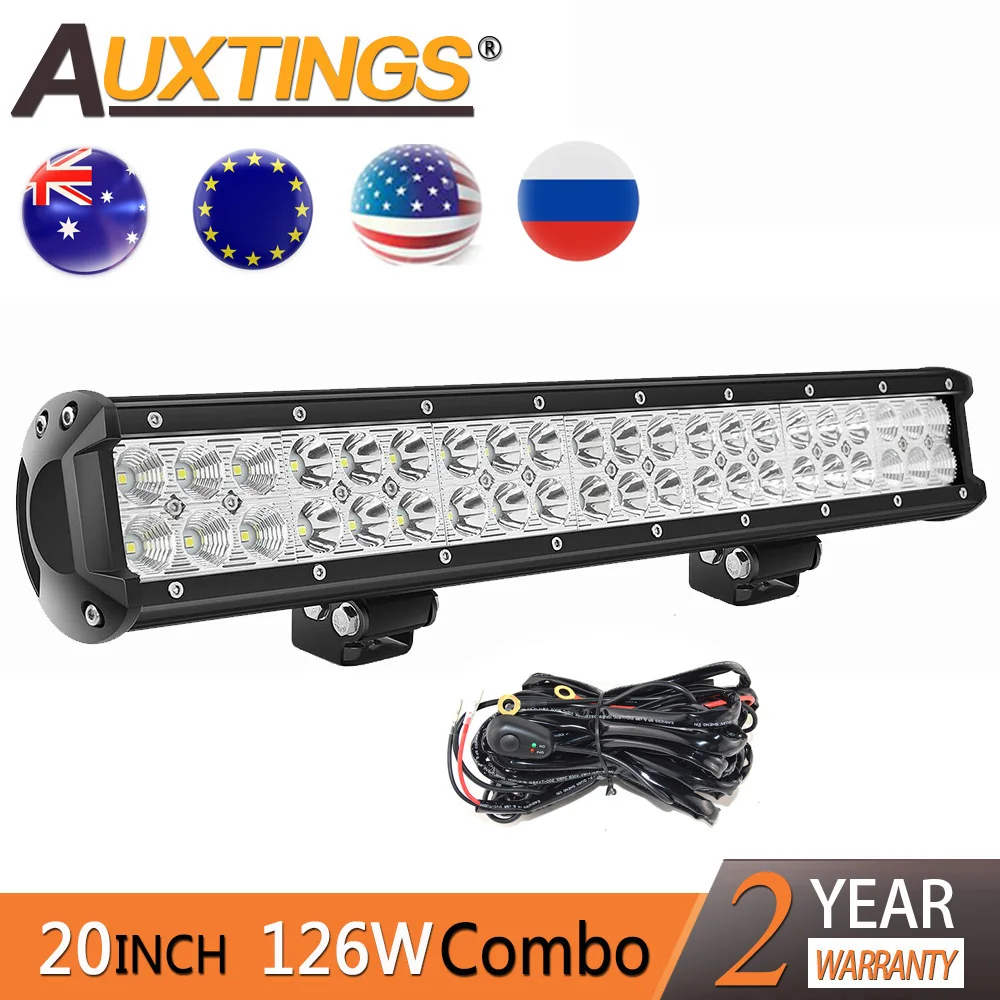 Auxtings 12v 24V 20 ''светодиодный светильник, двухрядный светодиодный светильник для вождения IP67, водонепроницаемый рабочий светильник 126W 20 inch, внедорожный автомобиль 4x4