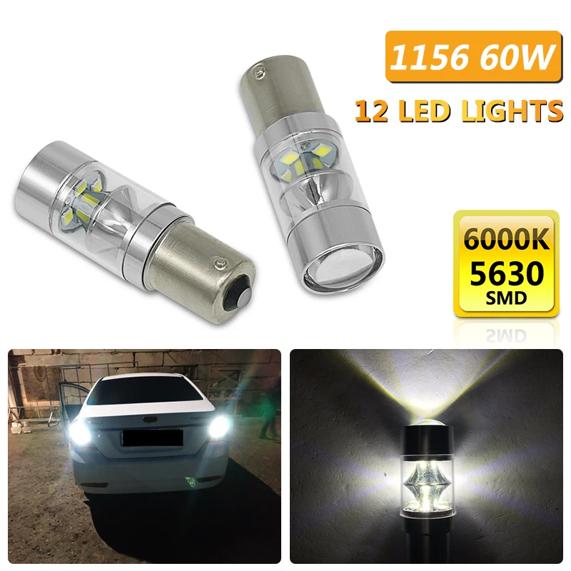 2 шт. 1156 60 Вт светодиодный автомобильный габаритные огни тормозные огни Дневные ходовые огни для Ford Focus 2 3 4 1 Fiesta Fusion mondeo mk3 mk4 mustang