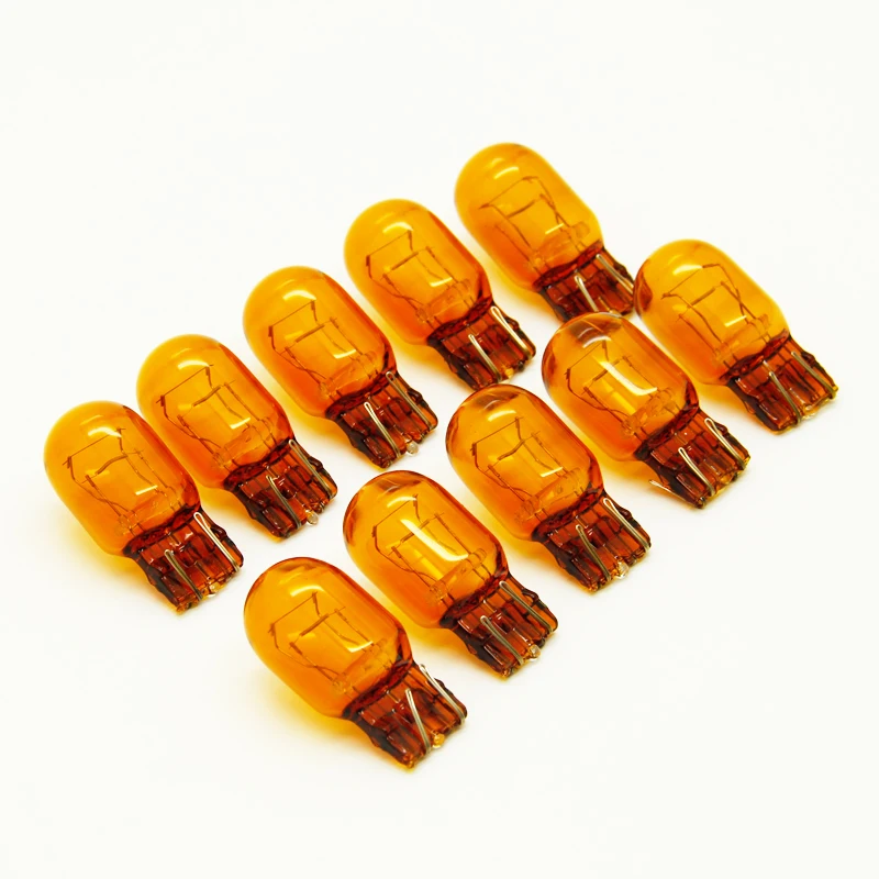 10 шт. 7443 T20 10 Вт янтарные Стекло 12V W3x16d Одиночная нить автомобильной лампы