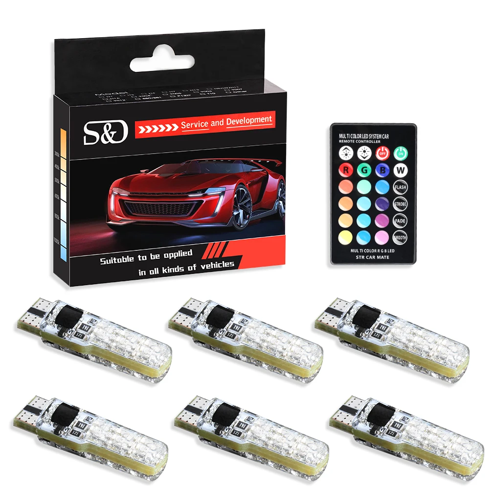 W5w t10 светодиодный светодиодные фары лампы RGB с дистанционным Управление 194 168 501 Стробоскопическая Светодиодная лампа светильник Лампы для ч...