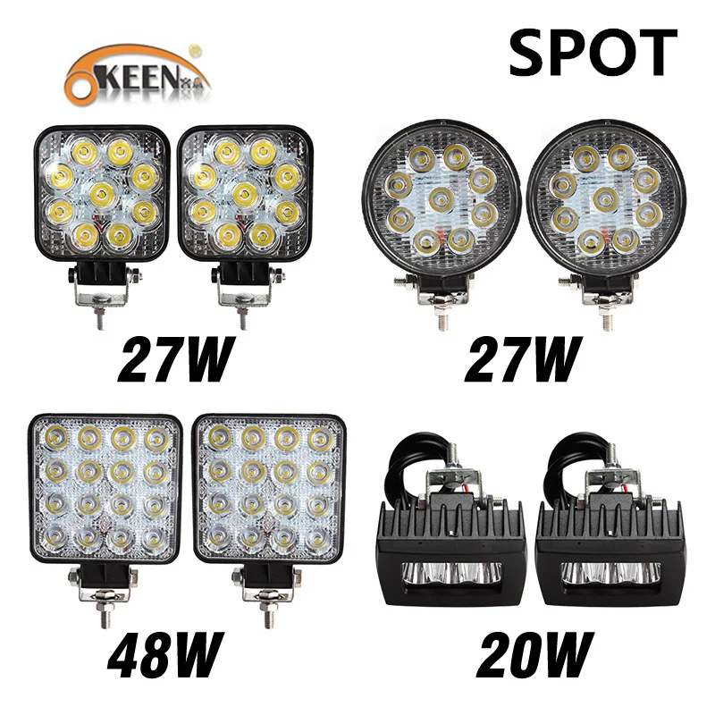 OKEEN Вт 2 светодио дный шт. 4 дюймов 20 Вт 27 Вт 48 Вт Offroad светодиодный рабочий свет автомобиля 4WD грузовик Трактор Лодка прицеп 4x4 внедорожник ATV 12 ...