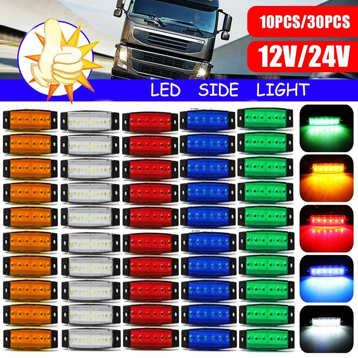 30X DC светодиодный 12 в 6 SMD 10 белый + 10 желтый + 10 красный светодиодный автомобильный Автобус Грузовик боковой габаритный индикатор низкий приц...