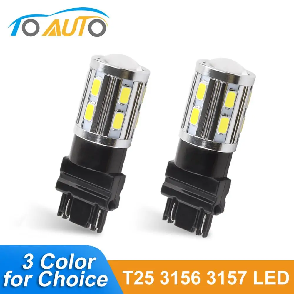 2 шт. T25 светодиодный 3157 3057 3056 P27/7 Вт светодиодный лампы 12 светодиодов SMD заднего хода автомобиля задний стоп-сигнал Автомобильные стояночные ...