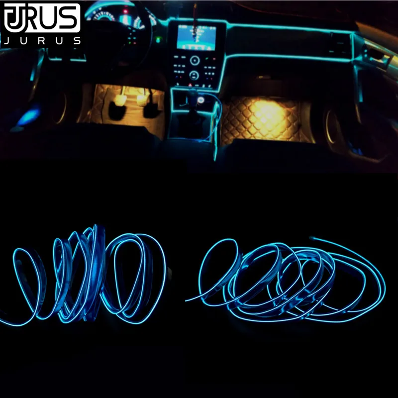 JURUS 2 шт., 1 м/2 м/3 м, гибкий неоновый светильник, светящийся El провод, автомобильный 12 В, лампа, украшение, Светодиодная лента, светильник, веревка, салон, авто подсветка, светильник