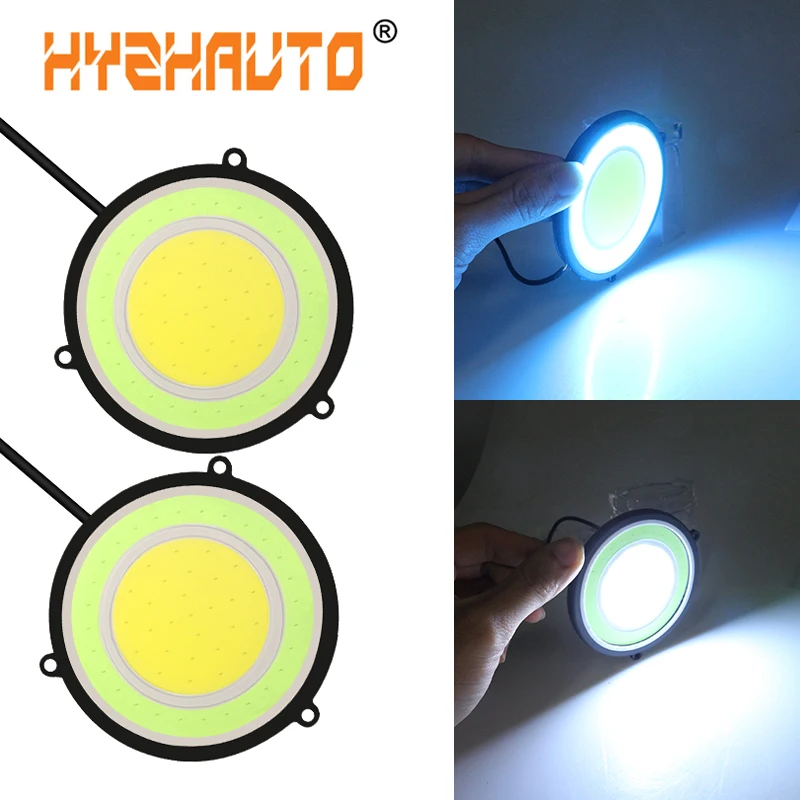 Тюнинг автомобилей Противотуманные фары Вождение автомобиля Габаритные огни 88 мм круглый COB светодио дный DRL Водонепроницаемый белый янтар...