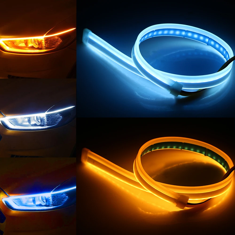 FORAUTO 1 шт. ультратонкая DRL автомобильная светодиодная лента, дневной ходовой светильник, белые поворотные сигнальные лампы, желтая направляю...