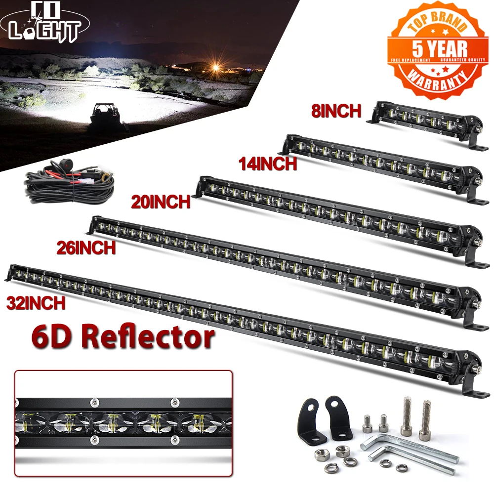 Со светом 6D тонкий светодиодный осветительный брусок 12В 8 "14" 20 "26" 32 "38" 44 "50" дюймовый комбинированный прожектор для внедорожник 4X4 внедорожный светодиодный рабочий свет лампы