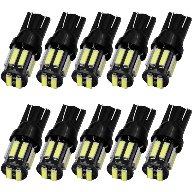 10 шт. T10 светодиодный W5W Автомобильные лампы приборные огни 168 194 поворотные зазор сигнала огни Лицензия подстилка в багажник лампа белый супер яркий