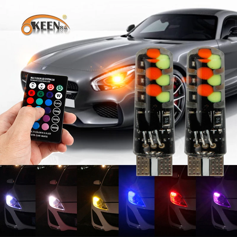 OKEEN Новый универсальный автомобильный RGB светодио дный W5W T10 RGB удара 12SMD Габаритные огни ярким автомобильное светильники с пульта дистанцион...