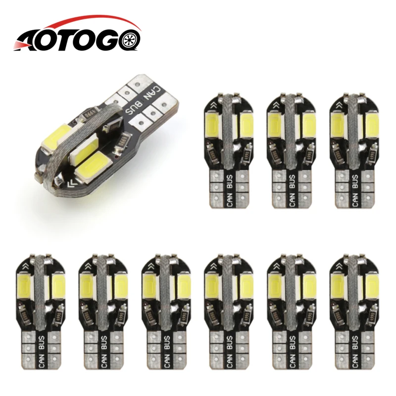 10 шт. T10 светодиодный 12 В лампочка для салона автомобиля Canbus без ошибок t10 светодиодный белый 5730 8SMD светодиодный автомобильный боковой клино...