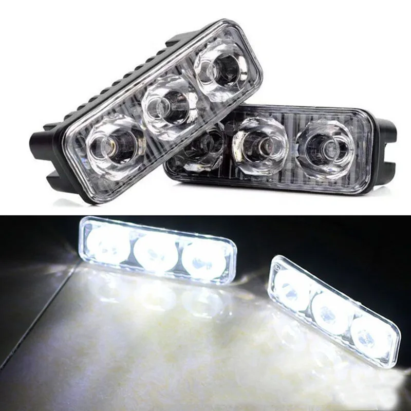 2 шт. Водонепроницаемые универсальные автомобильные алюминиевые светодиодные ходовые огни высокой мощности с 3 светодиодными линзами DC 12-24 в белые Противотуманные фары 6000K DRL