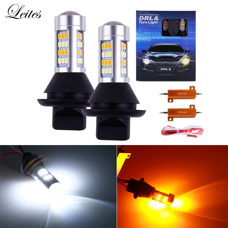 2x Canbus светодиодный 1156 BA15S BAU15S P21W PY21W светодиодный 42SMD T20 7440 W21W светодиодный Белый Янтарь с резисторы автомобилей сигнала поворота двойной реж...
